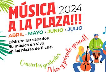 La concejalía de Cultura ha organizado un ciclo de conciertos denominado 'Música en las Plazas'. Esta innovadora propuesta se llevará a cabo en Elche y contará con 15 conciertos que se realizarán en las plazas más emblemáticas de la ciudad, los días sábados de abril, mayo, junio y julio.