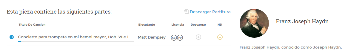 El "dominio público" se refiere a las obras que no están protegidas por la ley federal de derechos de autor y son libres para ser utilizados, copiados y distribuidos por cualquier persona sin atribución, permiso, licencia o pago de regalías. Una obra puede llegar a ser parte del dominio público por una variedad de razones, incluyendo la expiración del plazo de protección del derecho de autor, el fracaso de la obra para tener derecho a la protección de los derechos de autor, o la dedicación de la obra al dominio público por el autor de la obra. El concepto de dominio público difiere de un país a otro.Por último, la sección Music Education permite seleccionar el material que se necesita de acuerdo al instrumento que se está estudiando.Es un buen esfuerzo conjunto que vale la pena aprovechar.