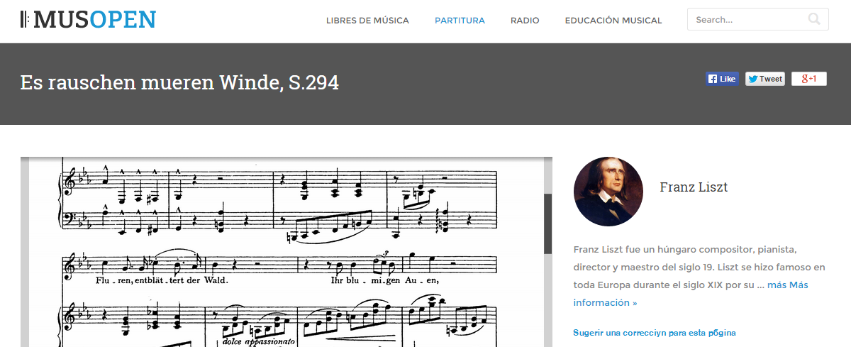 Musopen es un sitio que intenta reunir toda la música que está bajo Dominio Público y ponerla a disposición en formato de audio y sus partituras para descarga gratuitaMusopen es una organización sin fines de lucro enfocada en aumentar el acceso a la música mediante la creación de recursos gratuitos y materiales educativos.Proporcionan grabaciones, partituras y libros de texto para el público de forma gratuita, sin restricciones de copyright. En pocas palabras, la misión es crear música libre.