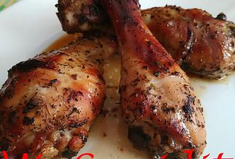 Colocamos los muslitos en una bandeja y rociamos con el aliño que nos queda en la fiambrera.