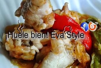 INGREDIENTES 500 GR DE MUSLITOS DE ALITAS.1 CEBOLLA.2 DIENTES DE AJO.1 PIMIENTO ROJO.1 PIMIENTO VERDE.3 TOMATES.1 VASO DE VINO BLANCO.SAL Y PIMIENTA.ACEITE DE OLIVA VIRGEN.TOMILLO Y LAUREL.