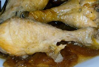 Para servirlos, colocamos una base de cebolla caramelizada en cada plato y colocamos encima los muslitos.