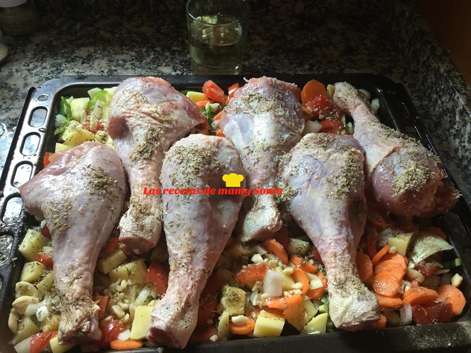 Servimos bien caliente acompañando a los muslos con las verduras