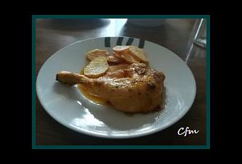 -2 muslos de pollo con piel y hueso-2 dientes de ajo-1 limón -1 cebolleta picada-Aceite de oliva-Sal-Pimienta