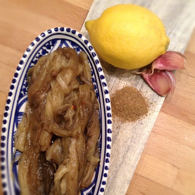 INGREDIENTES: 2 berenjenas medianas 1 diente de ajo zumo de medio limón 1 cucharada de Tahini (pasta de Sésamo) 1 cucharadita de comino molido pimienta negra sal paprika aceite de aceite PROCEDIMIENTO: