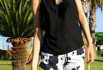 Cow shorts/ shorts vaca.- Persunmall (here) Top.- Zara (similar here) Ballerinas/bailarinas.- OVS (similar here)