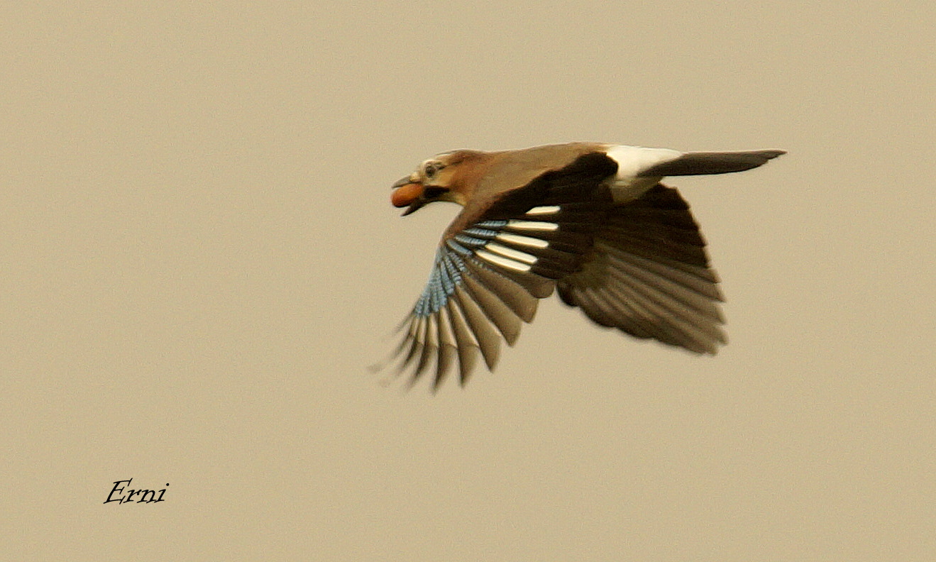 El arrendajo prefiere dejar el fruto para otro momento y lo enterrará para momentos de más penuria.