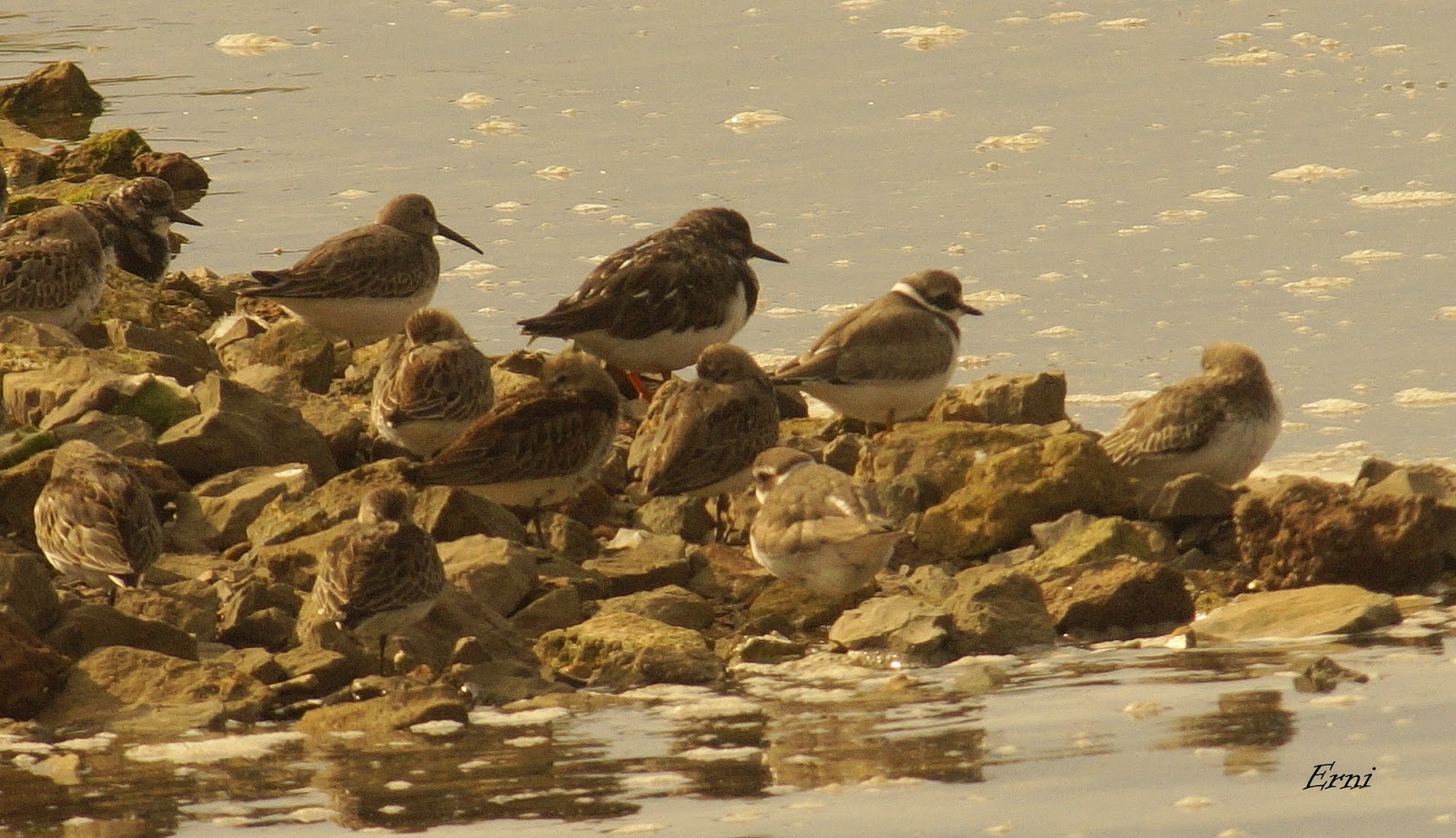 Vuelvepiedras, chorlitejo grande y correlimos común.