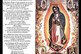 A ti, ‘Misionera Celeste del Nuevo Mundo’,que eres el rostro mestizo de Américay luminosamente manifiestas su identidad, unidad y originalidad,confiamos el destino de nuestros Pueblos.
