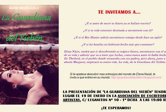 (portada del libro sujeta a modificación según la autoraclic en la imagen para ver en tamaño más grande)Una nueva autora española y muy joven estará el día 19 de enero presentando su primera novela, la Guardiana del Yiebén...Para más información pincha aquí.En algunos días todos los datos del libro.