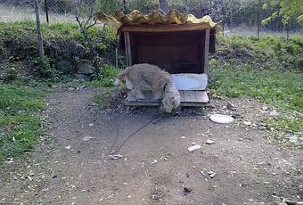 Mando las fotitos de Lani , la perrita atada en el campo.