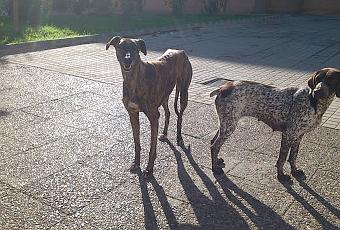 La otra es una galga atigrada de unos 2 o 3 años, es también miedosa pero se deja acariciar por quien conoce.