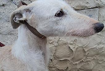 ESTA ES ANIKA, UNA PRECIOSA GALGA BLANCA EN SERIO PELIGRO.