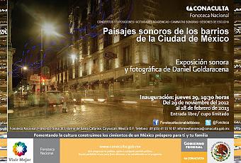 La exposición Paisajes sonoros de los barrios de la Ciudad de Méxicose exhibirá del 29 de noviembre de 2012 al 28 de febrero de 2013, en la Fonoteca Nacional, que se ubica en Francisco Sosa 383, Col. Barrio de Santa Catarina, Coyoacán (a dos cuadras de la estación del metro Viveros).