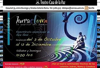 Espectáculo unipersonal de Aziz Gual.Temporada: del 2 de octubre al 12 de diciembre de 2010Funciones: Sábados y domingos 13 Hrs.Localidades: $150 pesosDescuentos: Estudiantes, maestros e INAPAM del 50%Jueves de Teatro: $75 PesosInvitados especiales: “La gran pompa”Promoción permanente: “Vente al teatro caminando” Vecinos de las colonias Juárez, Roma y Condesa 50% de descuento.Teatro Casa de la Paz.Cozumel #33 Col Roma5286 5315[email protected]