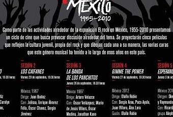 El Museo del Objeto proyecta ciclo de cine en la sala Margolín como parte de las actividades de la exposición el Rock en México 1955-2010 inaugurada el 28 de agosto en Colima 145, Col. Roma.