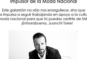 Felicitaciones a Juanchi Torre por el premio que le otorgo la Revista GQ México y Latinoamerica como Hombre del año 2013 como ”Promotor de Moda Nacional”.Compra Moda Nacional se enorgullece por el premio obtenido a Juanchi Torre.