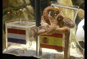 El famoso pulpo Paul ha regresado para pronosticar quien ganara la final del mundial. El sistema de predicción fue el habitual: dos cajas con las banderas de los dos países, con un mejillón dentro, y Paul elige en primer lugar cuál come, lo que se considera por los más supersticiosos como sinónimo de quién va a ser el vencedor.