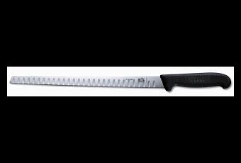 La línea de cuchillería de Victorinox tiene un cuchillo troquelado para salmón con hoja flexible de alvéolos de 30cm, el filo perfecto para lograr cortes parejos en el salmón, los alvéolos forman una cámara de aire entre la hoja y los alimentos evitando que se quede pegado. En cualquier cuchillo es muy importante el filo pues de éste depende el éxito del corte ya que su calidad es la que determinará su vida útil y en ella interviene tanto el material como la forma de tratarlo.