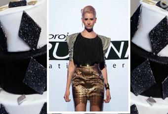 Defensa de prenda y críticas: Steph Orozco (México) Mi pastel era negro con blanco, plata y dorado. Busqué brillos y tonalidades en otros materiales, para dar a conocer el glaseado. Me gusta la geometría y traté de plasmarlo “Creo que es un diseño futurista bien logrado y la modelo se ve moderna”, Eglantina “Me gusta, veo la geometría y colores de la torta. No fuiste literal al plasmarlo y la pieza es moderna, de vanguardia y se puede usar, para mí esto es moda”, Ángel Sánchez “Es usable y bonito”, Ariadne “La torta es festejo, me pondría ese atuendo para ir a un evento”, Daniela Urzi.