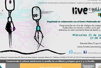 Live Coding se realizará el miércoles 25 de julio a las 17:00 horas en la Fonoteca Nacional, que se ubica en la calle Francisco Sosa No. 383, Col. Barrio de Santa Catarina en Coyoacán. A dos cuadras de la estación del metro Viveros. Informes a los teléfonos 41 55 10 07 y 41 55 10 10. En la página web www.fonotecanacional.gob.mx o en la dirección electrónica [email protected]