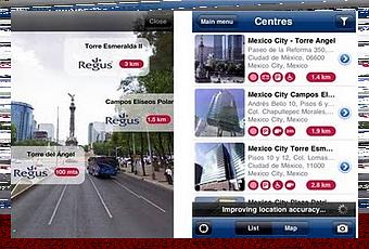 Con esta aplicación propia, diseñada y creada por la empresa londinense WavenaInteractive, los usuarios viven la experiencia de la comunicación móvil al máximo, ya que pueden buscar en la red global de Grupo Regus, el mejor y más cercano centro de negocios que se adapte a sus necesidades empresariales, no importando en que lugar del mundo se encuentren.