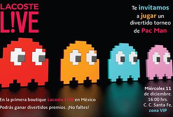 Asiste a la apertura oficial de Lacoste Live en Santa Fe y participa en un torneo de Pac Man con invitados VIP;  Renato López, Juan Pablo Gil, Daniela Gamba, Isabel Burr, entre otros.