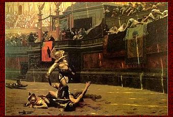 mano. En él, vemos al gladiador triunfante mirando hacia la tribuna, mientras mantiene el control sobre sus caídos contrincantes. Sin embargo, no es al emperador a quien consulta, sino a un grupo de mujeres, quienes con emociòn muestran sus pulgares hacia abajo, pidiendo así la muerte de los vencidos.En efecto, esas mujeres eran las virginales sacerdotisas de Vesta, llamadas vestales. La lucha entre gladiadores, no era un "deporte" o espectáculo exclusivo para varones, pues las mujeres también lo disfrutaban; seguramente por las mismas razones que hoy lo hacen las mujeres aficionadas al fútbol o a algún deporte para hombres: por el espectáculo en sí mismo y para ver a los luchadores.