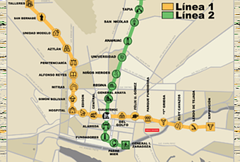 es que sea el mejor del mundo y que comunique toda la ciudad, pero está bastante bien. Actualmente cuenta solamente con dos líneas, la uno y la dos, aunque hay expectativas de agregarle mas líneas, en principio se tiene proyectadas la tres y la cuatro, pero no se tiene ni idea de cuando se pueda hacer, yo espero que en cien años ya estén funcionando.La línea uno fue la primera en construirse (lógicamente) y recorre la ciudad desde el este al oeste y viceversa. Por cuestiones económicas, parece que salía mas barato el hacerlo elevado, así que pillaron una calle con suficiente