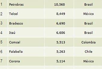 Ciudad de México, a 21 de junio de 2012. Millward Brown presento por primera vez, el ranking de las 50 Marcas Latinoamericanas Más Valiosas del 2012, realizado en conjunto con Brand Analytics y comisionado por WPP. El estudio comprende cinco países: México, Brasil, Chile, Colombia y Argentina. Es la única valuación de marca que combina datos financieros de Bloomberg y de Kantar World Panel, con la opinión recabada a través de entrevistas a más de 25,000 consumidores latinoamericanos sobre 800 marcas, de las cuales 170 son mexicanas. Esto hace de este ordenamiento el más robusto de los rankings disponibles en América Latina. Para ser evaluadas, las marcas deben ser de origen latinoamericano, que al menos dos terceras partes de sus ventas se lleven a cabo en la región y que pertenezcan a empresas públicas que hayan reportado utilidades. Las 50 Marcas Latinoamericanas Más Valiosas están valuadas en $135.7 mil millones de dólares. Petrobras, el gigante brasileño de energía, lidera el ranking con un valor de marca de $10,560 millones de dólares. Una petrolera, tres empresas de comunicación, tres instituciones financieras, dos marcas de cerveza y una de comercio al detalle ocupan los diez primeros lugares. De ellas, tres son mexicanas: dos de comunicación y una de cerveza. Las 50 marcas latinoamericanas más valiosas, son líderes en sus países de origen y muchas tienen presencia regional. La tienda departamental chilena Falabella opera tiendas a través de todo Sudamérica y la compañía mexicana de telecomunicaciones América Móvil a través de su marca Claro, atiende diversos países latinoamericanos. Muchas de las marcas latinoamericanas del top 50, tienen presencia global, incluyendo a Petrobras y a la mexicana Cemex, proveedora global de cemento. Las procesadoras brasileñas de alimentos, Sadia y Perdigao, exportan a todo el mundo. Cuando la aerolínea chilena LAN concluya su fusión con la aerolínea brasileña TAM, se convertirá en una de las más grandes empresas aéreas del mundo.