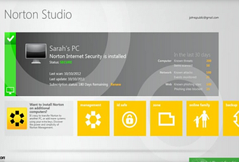 Los productos de Norton serán perfectamente compatibles con el nuevo sistema operativo (SO) Windows 8. Además, Norton está desarrollando nuevas aplicaciones específicamente para el entorno táctil Metro de Windows 8. La seguridad sigue siendo un tema clave cuando se producen lanzamientos de nuevos sistemas operativos y Windows 8 no es la excepción. Algunas de las aplicaciones compatibles con el entorno Metro previstas para esta semana son:• Norton Studio - Nueva interfaz de usuario táctil para productos de seguridad Norton.• Norton browser – La expansión de nuestros productos de navegación móvil permitirá mantener la seguridad de las transacciones que se realicen vía web, así como también la protección de identidad en el manejo de las contraseñas.• Norton cloud scanner () - Esta nueva aplicación permite a los usuarios mantenerse protegidos de cualquier tipo de fraude online a través de la detección de aquellos links maliciosos que suelen encontrarse en las redes sociales tales como Facebook y otras.