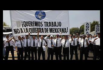 Trabajadores sindicalizados de : ASPA, ASSA, SNTTTAS encabezados por Fernando Pérez Perfecto, Claudia Quijas, Miguel Angel Yudico Colín, acusaron de la política de “ oídos sordos “ a su conflicto laboral, de las Secretaria de Comunicaciones y Transportes ( SCT ) Secretaria del Trabajo y Previsión Social ( STPS ) y los legisladores del PAN en el caso de Mexicana.En rueda de medios, vertieron lo anterior, a la par, de “ arremeter “ contra el primer ejecutivo federal Felipe de Jesús Calderón Hinojosa, al que, acusaron de ser el primer responsable de acabar con la fuente de trabajo de mas de 200 mil empleos directos y mas de un millón de empleos indirectos. Afectando, no solo a la base laboral, sino a la industria del turismo como principal generadora de divisas para nuestro país, en un momento crucial de la economía internacional. El primero, en señalar dicha posición, fue el dirigente de los pilotos aviadores Pérez Perfecto, quien puso de ejemplo que en otros países como Japón, Estados Unidos y Londres, las principales líneas aéreas fueron rescatadas para continuar con dicha industria, el caso mas notable, es en el vecino país del Norte, en donde el presidente Obama, logro el rescate de American Ailine, a través de la creación de un fidecomiso con recursos públicos. Sin embargo, adujo, en México, tal parece, que la intención principal de la actual administración federal que encabeza FCH, es “ a toda costa de desaparecer dicha empresa “, y añadió, que en contrasentido, su principal objetivo, es apoyar a las empresas transnacionales, como la empresa española CAF que pese a su baja rentabilidad en la operación del tren suburbano y la empresa Chrysler, no impide, que cuentan con el aval del gobierno federal, para seguir adelante. Por lo que sentenció , “ la intención gubernamental “ es eliminar a la empresa Mexicana de Aviación “ pues cito, que las autoridades de la SCT se han mostrado hostiles a los representantes de los tres grupos de inversionistas interesados en Mexicana de Aviación. No sin antes enunciar, que no solo les piden más y mas requisitos, sino algunos grupos, han sido auditados por las propias autoridades de la SHCP. Por su parte, el dirigente de la Asociación de empleados de confianza, Jorge Jacome, aclaro, que con la salida de Mexicana, las líneas que se han beneficiado, son las llamadas líneas “ bandera “ Volaris, Interjet, y Aero-México, aunque los principales perjudicados son los usuarios, pues se han incrementado las tarifas aéreas, hasta en un 40 %. Lo cierto, es que no cubren por completo algunos vuelos internacionales. Por ultimo, el dirigente de los trabajadores de Tierra ( SNTTTAS ) Yúdico Colín, expreso, su malestar, contra el autollamado “ Presidente del empleo “ que solo se ha dedicado a acabar con las fuentes de trabajo, no solo de sus agremiados, sino de eléctricos, mineros, etc. Objeto, que la llamada Torre de Luz, se debía llamar “ Estafa de Luz “, por su inoperancia y su despilfarro de recursos públicos, mientras, que a los trabajadores de Mexicana, les niegan su rescate financiero. Al final, confirmaron, que tampoco ha sido recibidos por la nueva titular de la STPS, para escuchar sus razones. Sin dejar de mencionar que continuaran las acciones de resistencia en la sede del PAN, para increpar a los pre-candidatos de dicha instancia política al medio día, plantón permanente en la SCT y el Aeropuerto Capitalino. Para el jueves, se espera otra movilización en diversos puntos de la ciudad.regresar/homeregresar/home