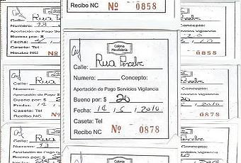 En mi caso son los propios vigilantes los que vienen a cobrar la cuota y nos dejan un comprobante, que no se yo si es muy legal el asunto ya que a pesar de que vienen numerados, los puede hacer cualquier saltacharcos en una imprenta de cuarta, además que la numeración está medio rara porque (como ves en la imagen mas arriba) el 28 de mayo me dieron el 637, el 14 de mayo el 878 y el 4 de junio el 858. En fin, de todos modos está bien porque así, por un lado conoces a los vigilantes, y por otro, cada vez que vienen a cobrar suelo tomar uno o dos minutos para charlar con él y preguntar como anda el asunto roberil, por lo general siempre me cuentan que robaron en las colonias de alrededor, y en alguna rara ocasión me cuentan de que robaron en la propia colonia. Con ello, queda claro que no vamos a evitar los robos al 100%, pero si al 80%, yo creo es un buen avance por 20 pesos a la semana.