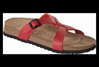 Esta es una sofisticada sandalia de correas entre-cruzadas que provee amplia sujeción al pie con una hebilla ajustable, lo que la hace súper cómoda. El color es increíble, rojo con mini puntitos blancos, que podrás combinar con jeans, faldas y si tu estilo es más innovador, unos skinny jeans verdes, morados o del color que tu estilo te dicte se verán súper bien con estos Sylt cherry!Además estas Sylt cherry están hechas de Birko-Flor, un material muy amigable con la piel, muy resistente y fácil de cuidar. Tienen la ventaja de tener la apariencia muy parecida a la piel genuina, y sin duda es la mejor alternativa para tu bolsillo; por supuesto cuentan con la exclusiva plantilla Birkenstock.