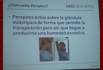 “Existen varios procedimientos para ayudar a controlar este padecimiento, pero en su mayoría son tratamientos caros e invasivos, es por eso que Merz Pharma ha traído a México Perspirex, el nuevo antitranspirante con fórmula a base de Cloruro y lactato de aluminio, que puede reducir la sudoración hasta un 65%. Perspirex puede ser usado tanto por hombre como mujeres ya que no tiene aroma y es trasparente”.