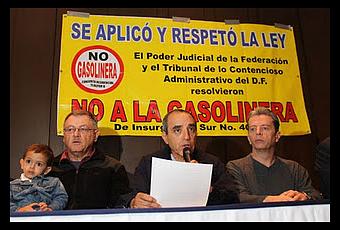Recordaron que esta gasolinera comenzó a fraguarse durante la administración de Guillermo Sánchez Torres como Jefe Delegacional en Tlalpan y fue consentida por su sucesor y miembro del mismo equipo político, Higinio Chávez. Hoy Sánchez Torres es presidente de la Comisión de Desarrollo e Infraestructura Urbana de la Asamblea Legislativa y, desde allí, cada fin de legislatura, cuando vienen los procesos electorales y mientras todo el mundo está entretenido con las candidaturas, se realizan cambios en los usos de suelo que benefician a unos cuantos políticos y empresarios y dañan a la ciudad y a sus ciudadanos.