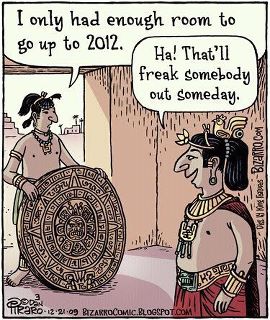 Y, sí, ya sé; yo también leí las teorías de que el 21 de diciembre 2012 solo marca el final de un ciclo y el comienzo del siguiente, ¡pero no me van a decir que pensar en un cataclismo inminente no es mucho más divertido!
