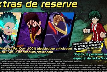 También se han compartido algunos de los incentivos de reserva que contará el título, que contará con los artículos que podéis ver a continuación, entre los que se cuentan un aspecto único para Midoriya disponible sólo con la reserva.