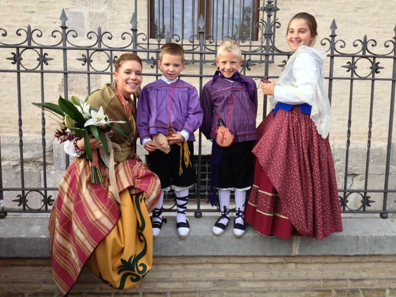 ¿Sabéis cual es mi secreto de hoy? Los mañicos, su ilusión y fervor por sus fiestas….¿el secreto?... “saber vivirlas” Aunque fueron la semana pasada, he querido esperar a ésta para poder mostraros algunas imágenes típicas y como se viven…..no os podéis ni imaginar el ambientazo que había en Zaragoza. Como todos los años el pregón, desde el balcón del Ayuntamiento, dio el inicio a las fiestas. Me acerqué a ver el ambiente y … ¡os lo aseguro! no cabía un alfiler de la gente que estaba esperando impaciente el comienzo… ¿Quién no ha oído hablar de la Ofrenda de Flores? Resulta ser la mayor manifestación de la devoción popular hacia la Virgen del Pilar. Durante todo el día, multitud de personas ataviadas con trajes regionales de todas las regiones de España, así como de otros lugares del mundo, según su lugar de nacimiento, portan flores a la Virgen. Bueno bueno!!!…y que os voy a contar sobre estos trajes…Son una auténtica maravilla!!! Artesanía pura y es tal la variedad, el colorido y el orgullo con el que lo llevan….que a pesar de las largas filas y el rato de espera hasta llegar a la Plaza del Pilar se vive con mucha alegría y entusiasmo… merece la pena venir a verlo os lo garantizo.Viva La Virgen del Pilar!!!! Quiero agradecer las fotos a mis amigas que son las que se visten todos los años junto a su familia…que guapos están, verdad?