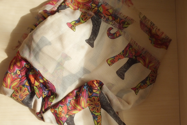 3. Mi pañuelo de elefantes con estampados hippies y étnicos. Perfecto para esas noches que refresca.