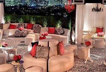 Los chill outs pueden ser exteriores, ya sea porque los novios quieran una boda tipo cóctel y en vez del montaje de mesas y sillas tradiciones decidan hacer un montaje chill out para ello (recomendamos que haya incluso más espacio del requerido para que todos los invitados puedan sentarse porque así se podrán levantar libremente e ir de un sitio a otro); ya sea porque los novios quieran montar un chill out para la hora del baile y como en interiores no se puede fumar deciden montarlo en el exterior. También se pueden montar en el interior, para bodas tipo cóctel en los meses de frío o para el momento de la discoteca, cerca de la pista de baile y la barra de bebidas, para aquellos que quieren estar en el "sarao" de una forma cómoda y no son muy de bailar... Lo importante cuando se monta un chill out es que sea cómodo para todos, esté muy bien situado e iluminado, no le falte ningún detalle y esté decorado según el lugar y ambiente escogido por los novios. En eso, los Wedding Planners profesionales somos expertos. Os dejamos con una foto de un chill out muy romántico y chic...