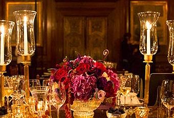 Ya os hemos adelantado en nuestros Tendencias o en nuestras Inspiraciones muchos aspectos que componen esta foto de un montaje de mesa de boda otoñal: los tonos dorados en cubiertos o portabelas, colores rojos, granates, rosas fuertes en las flores de los centros a juego con el color del mantel; mesa imperial con camino de espejo en medio donde se colocan los centros; distintos tipos de velas y de diferentes alturas pero que en ningún caso molesten a los invitados de enfrente; sillas elegantes de color dorado o transparente que enmarcan esta maravillosa mesa de boda, candelabros colgando y presidiendo la sala...