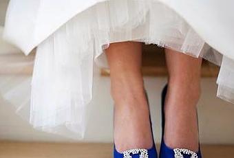 He abierto el post con la imagen de unos zapatos que se han vuelto míticos en los outfits nupciales. Todas las mujeres de este planeta recordamos la mítica escena en la que Mr. Big le pide matrimonio a Carrie con el modelo Hangisi de Manolo Blahnik en color azul, en ese vestidor de ensueño que nunca utilizarían.Desde ese momento, ese zapato se convirtió en un super ventas para las novias de medio mundo y, a día de hoy, sigue siendo una apuesta segura para muchas de ellas (véase la it-girl Olivia Palermo), ya que dotan de un punto muy divertido y fashionista al clásico look en blanco.