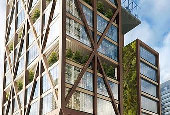 Los apartamentos, a los que se llega a través de un puente acristalado en la duodécima planta, incorporan jardines de invierno con vistas panorámicas a la ciudad. La fachada está caracterizada por tonos metálicos y una estructura de bronce.