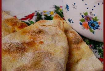 Ingredientes: 4 cucharadas agua templada; 4 cucharadas yogur griego; 150 g harina; 1/2 cucharadita levadura seca de panadero; sal; aceite; 2 quesitos; comino.