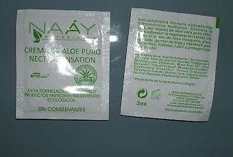 La primera muestra que he probado, ha sido esta crema de aloe puro. Es una crema con una textura muy cremosa y un olor muy rico. Es muy nutritiva y se puede utilizar para varios fines.