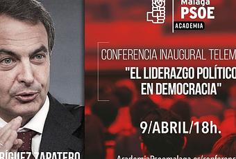 Crean la academia de formación del PSOE de Málaga, una iniciativa impulsada para mejorar la acción política de los cargos públicos y orgánicos del partido en VideosPara la inauguración, el ex presidente del Gobierno José Luis Rodríguez Zapatero pronunciará la conferencia ‘El liderazgo político en democracia’. Será retransmitida por redes sociales (en los perfiles del partido) y mediante ZOOM. La militancia interesada en participar puede inscribir en el siguiente enlace.