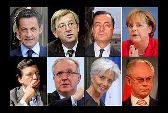 Para defender los intereses de la banca y el sistema financiero europeo se ha configurado un gobierno en la sombra que ha tomado el timón de la Eurozona. Este gobierno europeo se formó en la despedida de Jean Claude Trichet realizada en la antigua ópera de Frankfurt, y por esa razón se le ha bautizado como Grupo de Frankfurt. La lista de sus ocho integrantes la componen la canciller alemana, Angela Merkel; el presidente francés Nicolás Sarkozy; la directora gerente del FMI, Christine Lagarde; el presidente del Eurogrupo, Jean Claude Juncker; el presidente de la Comisión Europea, José Manuel Durao Barroso; el presidente del Consejo Europeo, Herman Van Rompuy; el Comisario de Asuntos Económicos, Olli Rehn, y el recién estrenado presidente del BCE, Mario Draghi.