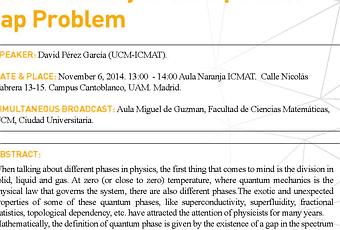“Undecidability of the Spectral Gap Problem”. David Pérez-García (UCM-ICMAT). Jueves 6 de noviembre de 2014. 13:00. Aula Naranja, ICMAT.