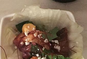 En esta ocasión, Cervezas Alhambra escogió La Cuina de la Boquería para la celebración de Noches Alhambra. Allí, el asturiano trajo su cocina primero con unos aperitivos tomados como cóctel y, ya habiendo despertado el estómago, el resto de platos en mesa.